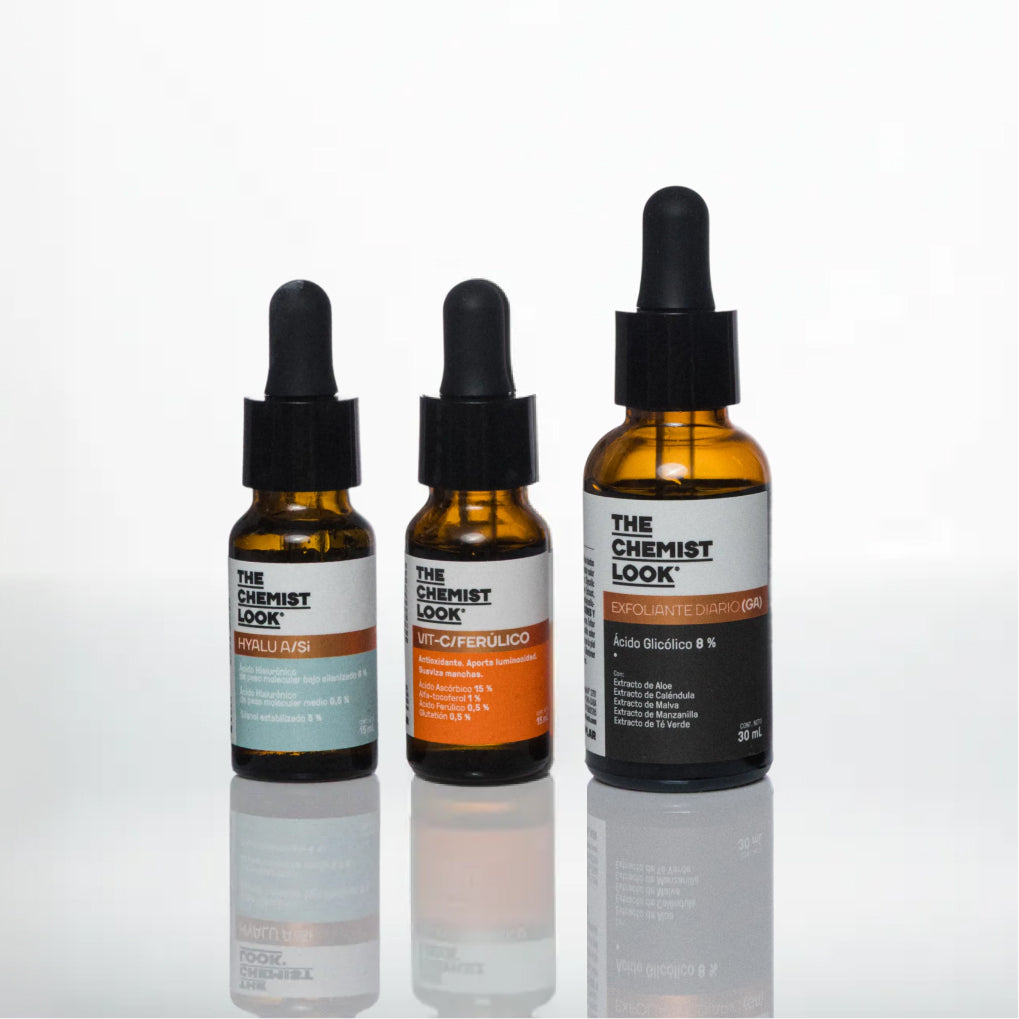 La combinación del EXFOLIANTE RENOVADOR GA con el BOOSTER VIT-C/FERÚLICO y el BOOSTER HYALU/A-Si es ideal para quienes buscan lograr una mayor luminosidad y efecto glow en la piel. Además, previenen y mejoran signos de envejecimiento debido a que aumentan los niveles de colágeno, unifican el tono y protegen a la piel de los efectos deletéreos de la radiación solar gracias a su acción antioxidante.